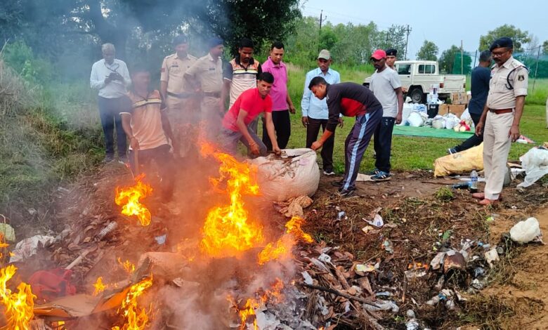 इस दौरान एनडीपीएस एक्ट के 28 प्रकरणों में जब्त 171.041 किलोग्राम गांजा एवं 23 नग गांजा का पौधा, अफीम 130 ग्राम, डोडो 1.772 किलो ग्राम को नष्ट किया गया जिसकी अनुमानित कीमत करीब 40 लाख रूपये है।