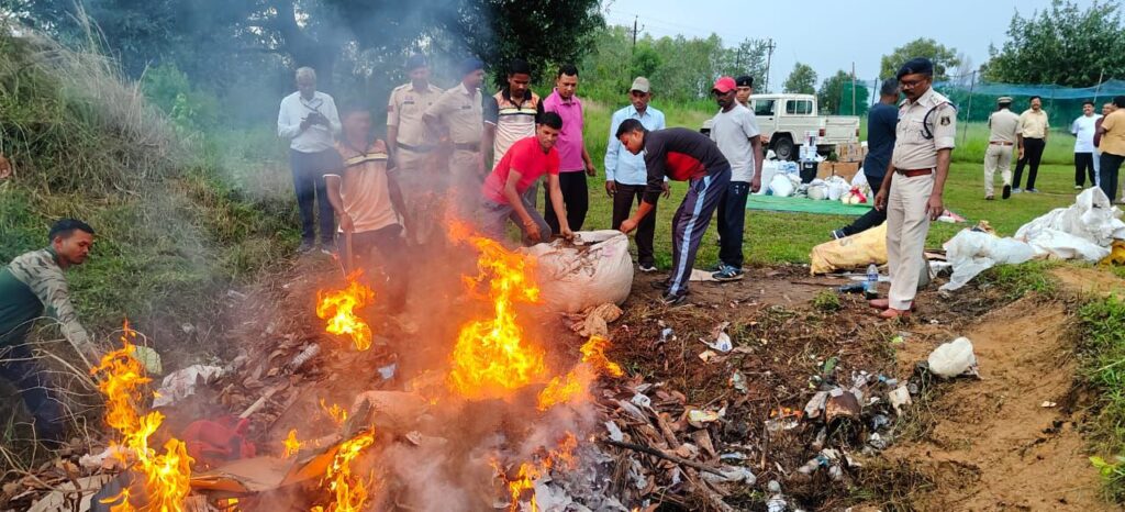 सूरजपुर । गुरूवार, 25 सितम्बर 2025 को सूरजपुर जिले में मादक पदार्थों के खिलाफ बड़ी कार्रवाई की गई। पुलिस लाईन परिसर में अस्थायी भट्ठे में मादक पदार्थों को जलाकर नष्ट किया गया। जिला स्तरीय औषधि निपटान समिति की देखरेख में यह कार्रवाई की गई।
