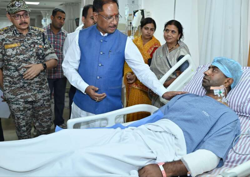 मुख्यमंत्री श्री विष्णु देव साय ने आज राजधानी रायपुर के रामकृष्ण केयर हॉस्पिटल में सुकमा जिले के कोंटा में नक्सलियों द्वारा किए गए आईईडी विस्फोट में घायल जवानों से मुलाकात की। मुख्यमंत्री श्री साय ने घायल जवानों से उनका हाल-चाल जाना और उनके शीघ्र स्वास्थ्य लाभ की कामना की। उन्होंने घायल जवानों को बेहतर इलाज उपलब्ध कराने चिकित्सकों को निर्देशित किया।