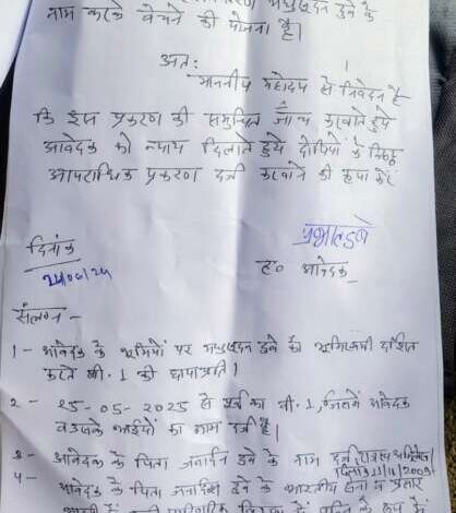 पीड़ित ने कलेक्टर जन दर्शन में शिकायत कर नामांतरीत भूमियों को प्रार्थी व उसके भाइयों के नाम कराने और दोषियों पर जल्द से जल्द कार्यवाही करते हुए न्याय करने की गुहार लगाई है