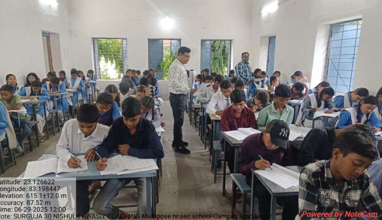 अम्बिकापुर, 29 जून 2025/ जिले के प्रतिभावान विद्यार्थियों को निशुल्क कोचिंग प्रदान करने के उद्देश्य से संचालित “सरगुजा 30” कोचिंग के लिए चयन परीक्षा का आयोजन आज सफलतापूर्वक संपन्न हुआ। इस परीक्षा में जिले के विभिन्न विकासखंडों से कक्षा 9वीं, 10वीं, 11वीं और 12वीं के कुल 548 विद्यार्थी शामिल हुए।