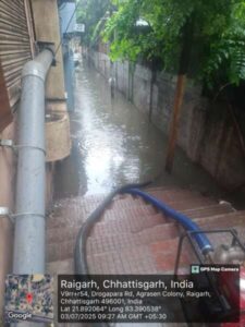 रायगढ़, 03 जुलाई 2025/ शहर में बीती रात से हो रही भारी बारिश के चलते कई जगहों पर जल भराव की स्थिति निर्मित हुई है। कलेक्टर श्री मयंक चतुर्वेदी ने नगर निगम आयुक्त श्री बृजेश क्षत्रिय को युद्धस्तर पर प्रभावित इलाकों में आपदा राहत कार्यों के लिए निर्देशित किया है।