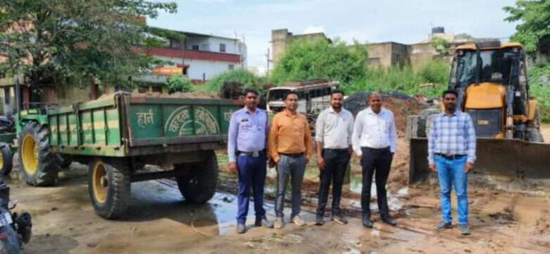 रेत घाट पर भगदड़,टीम ने पकड़ा 1 जेसीबी व ट्रेक्टर, बाकी छोड़ भागे