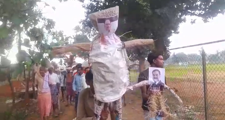 ग्राम फतेहपुर में ग्रामीणों ने विरोध प्रदर्शन कर गौतम अडानी और मुख्यमंत्री विष्णु देव साय का फूंका पुतला