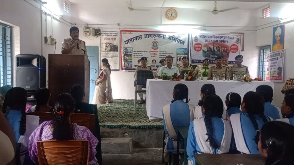 सूरजपुर। जिले में सुरक्षित यातायात एवं यातायात नियमों के प्रति जागरूकता के लिए ‘‘सुगम सफर अभियान’’ के तहत शुक्रवार, 18 जुलाई 2025 को विश्रामपुर स्थित कन्या स्कूल के छात्राओं को डीआईजी व एसएसपी सूरजपुर ने यातायात नियमों के प्रति जागरूक करते हुए बताया कि सुरक्षा नियमों का यदि सम्मान कर उसका पालन करते है तो न दुर्घटना होगी और न ही आप परेशान होंगे। जीवन में यातायात नियमों की क्या अहमियत है, जरा सी लापरवाही कैसे जान पर भारी पड़ जाती है, इससे बचने के लिए यातायात के नियमों का पालन कर किस प्रकार सफर को सावधानी से सुगम बनाया जा सकता है उसके बारे में बताया।