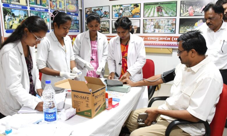 बलरामपुर 23 जुलाई 2025/ जिले में स्वास्थ्य के प्रति जागरूकता को बढ़ावा देने के उद्देश्य से संयुक्त जिला कार्यालय में अधिकारी-कर्मचारियों के लिए एक दिवसीय निःशुल्क स्वास्थ्य शिविर का आयोजन किया गया। शिविर में कलेक्टर श्री राजेंद्र कटारा ने स्वयं की स्वास्थ्य जांच कराकर लोगों को स्वास्थ्य के प्रति सजग रहने का संदेश भी दिया। उन्होंने कहा कि सभी शासकीय सेवक अपने स्वास्थ्य का परीक्षण अवश्य करवायें।