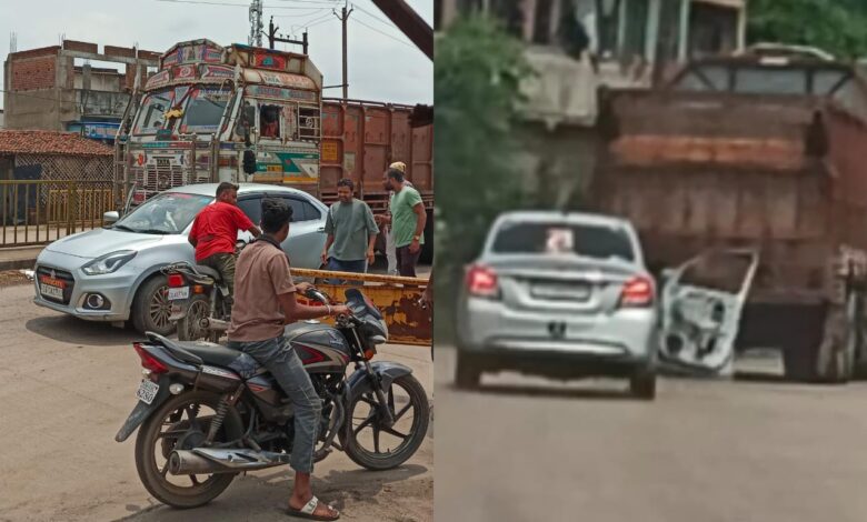 रायगढ़ | दोपहर करीब 1 बजे काशीराम चौक स्थित सिग्नल के पास एक बड़ी दुर्घटना टलते-टलते रह गई। सड़क किनारे बने ब्रेकर के पास धीरे चल रही एक कार को पीछे से तेज रफ्तार भारी वाहन ने ठोकर मार दी। कार सवार लोगों ने जैसे ही ट्रक को रोकने की कोशिश की, चालक और तेज रफ्तार में ट्रक लेकर फरार हो गया।