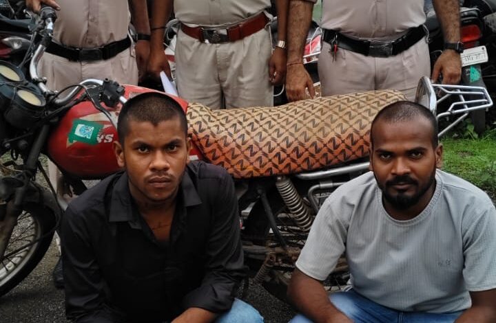 रायगढ़, 26 जुलाई 2025 – थाना कोतरारोड़ क्षेत्र में मारपीट और लूट की गंभीर वारदात में फरार चल रहे दो आरोपियों को पुलिस ने कल ग्राम रक्सापाली से धरदबोचा है। गिरफ्तार आरोपियों में पारस सोनी और कौशल चौहान शामिल हैं, जिन्हें घटना में प्रयुक्त मोटर सायकल व मोबाइल फोन के साथ गिरफ्तार कर न्यायिक रिमांड पर भेज दिया गया है।