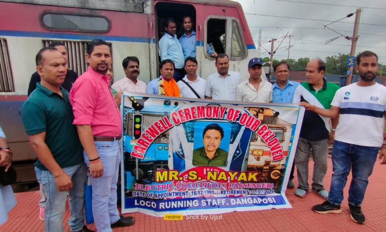 डांगुआपोशी के सेवानिवृत लोको पायलट पैसेंजर एस नायक को दी गई विदाई, 31 अगस्त को सेवानिवृत होंगे मंडल के 49 रेल कमी अगस्त