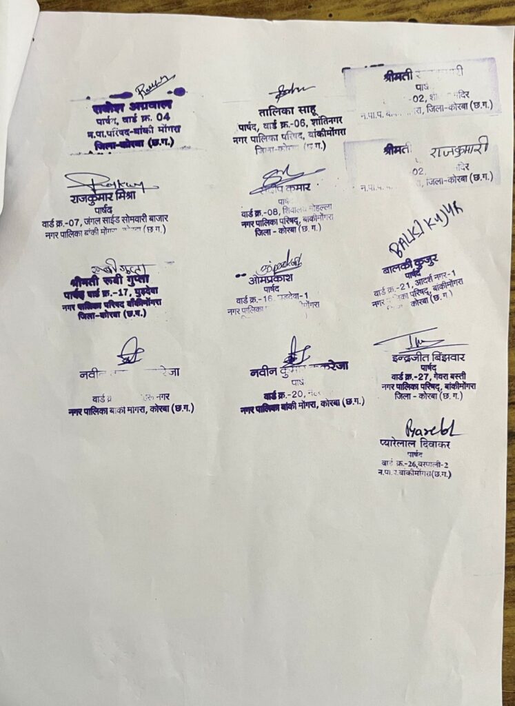 बाँकी मोंगरा नगर पालिका के विपक्षी पार्षदों ने किया सामान्य सभा का आयोजन करवाने की माँग