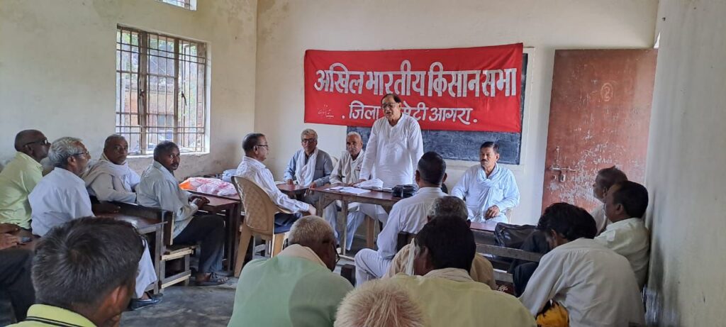 मलपुरा (आगरा) । अखिल भारतीय किसान सभा, आगरा जिला कमेटी की जिलाध्यक्ष श्री भीकम सिंह कुशवाहा की अध्यक्षता में जे.एस.एस. पब्लिक स्कूल मलपुरा में आयोजित बैठक में बिजली के निजीकरण, मूल्य वृद्धि, स्मार्ट मीटर निरस्त करने, मर्जर के नाम सरकारी स्कूलों को बंद करने के आदेश निरस्त करने तथा अमेरिका के दबाव में कृषि, डेयरी और खाद्य बाजार क्षेत्रों को खोलने के लिए प्रस्तावित मुक्त व्यापार समझौते पर हस्ताक्षर नहीं करने की मांग की गई।