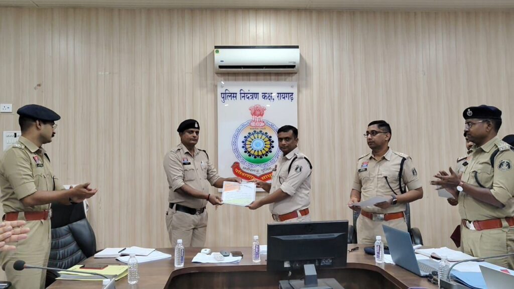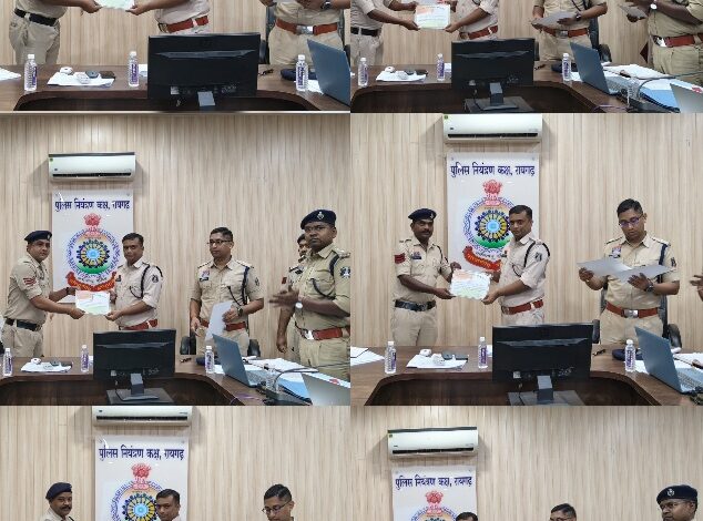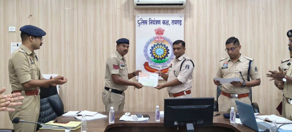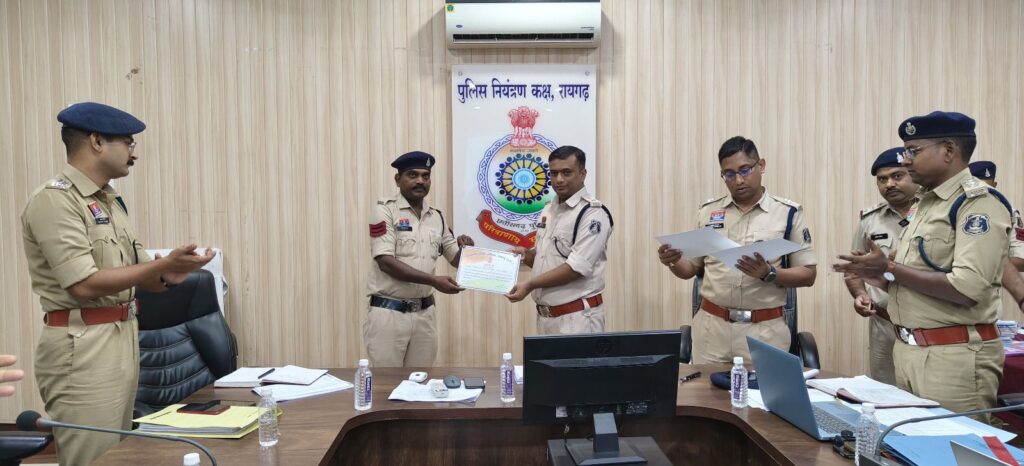तमनार थाना के प्रधान आरक्षक बनारसी लाल सिदार और हेमंत पात्रे को उड़ीसा से गुम महिला की दस्तयाबी, घरघोड़ा थाना क्षेत्र में हत्या के मामले में 3 घंटे में आरोपी की गिरफ्तारी में सराहनीय भूमिका निभाने वाले प्रधान आरक्षक पारसमणी बेहरा और आरक्षक हरीश पटेल, तथा कापू थाना क्षेत्र की गुम बालिका को झारखंड से बरामद कर लाने में उल्लेखनीय योगदान देने वाले प्रधान आरक्षक मनोज सिंह, आरक्षक संजीव पटेल एवं विक्रांत भगत को प्रशस्ति पत्र प्रदान कर उनका उत्साहवर्धन किया गया।