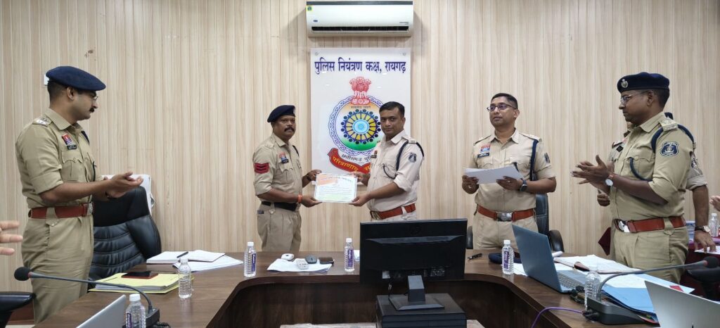 पुलिस अधीक्षक ने ली मासिक अपराध समीक्षा बैठक, उत्कृष्ट कार्य के लिए आरक्षकों को किया सम्मानित