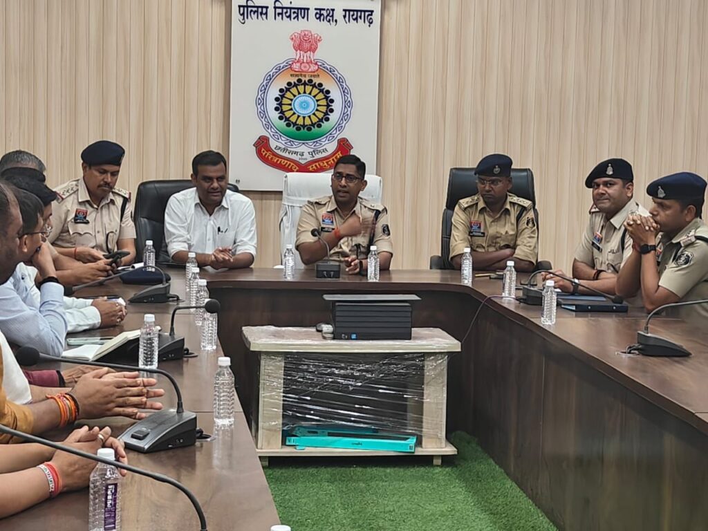 बैठक में अतिरिक्त पुलिस अधीक्षक श्री आकाश मरकाम, नगर पुलिस अधीक्षक श्री मयंक मिश्रा, एसडीएम रायगढ़ श्री महेश शर्मा, उप पुलिस अधीक्षक साइबर सेल श्री अनिल विश्वकर्मा, उपायुक्त नगर निगम श्री सुतीक्षण यादव, तहसीलदार श्री शिव डनसेना, नगर निरीक्षक सुखनंदन पटेल, प्रशांत राव, मोहन भारद्वाज, अमित शुक्ला, नायब तहसीलदार रायगढ़, स्वास्थ्य अधिकारी नगर निगम श्री शिवकुमार यादव, विद्युत विभाग के सहायक यांत्रिक योगेश मेहर सहित संबंधित विभागों के अधिकारी उपस्थित रहे।