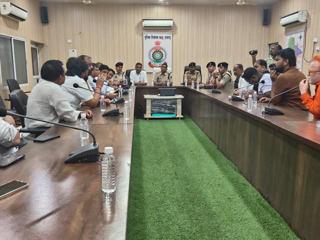 रायगढ़, 8 अगस्त 2025 – पुलिस नियंत्रण कक्ष रायगढ़ में आज अतिरिक्त पुलिस अधीक्षक श्री आकाश मरकाम की अध्यक्षता में जन्माष्टमी पर्व और मेला आयोजन की तैयारियों को लेकर मेला संचालकों, स्थानीय व्यापारियों और जनप्रतिनिधियों की अहम बैठक आयोजित की गई। बैठक में मेले के दौरान सुरक्षा और यातायात व्यवस्था पर विस्तार से चर्चा की गई, जिसमें आयोजन समिति के सदस्यों ने अपने सुझाव और विचार प्रस्तुत किए।
