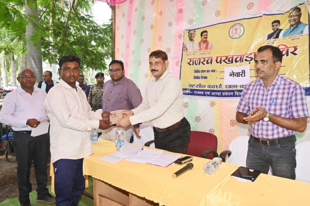 कवर्धा । मुख्यमंत्री श्री विष्णुदेव साय एवं उपमुख्यमंत्री श्री विजय शर्मा की मंशा के अनुरूप जिला प्रशासन द्वारा ग्रामीणों के द्वार तक त्वरित, पारदर्शी एवं सुलभ राजस्व सेवाएं पहुंचाने की महत्वपूर्ण पहल की जा रही है। इस पहल के अंतर्गत गांव-गांव में विशेष राजस्व समाधान शिविर आयोजित कर विभिन्न सेवाएं स्थानीय स्तर पर ही उपलब्ध कराई जा रही हैं। इसी क्रम में ग्राम नेवारी में आयोजित शिविर ने न केवल ग्रामीणों की वर्षों से लंबित समस्याओं का त्वरित निराकरण किया, बल्कि शासकीय सेवाओं को समयबद्ध एवं भरोसेमंद तरीके से सीधे उनके गांव में सेवाएं प्रदान की गई।