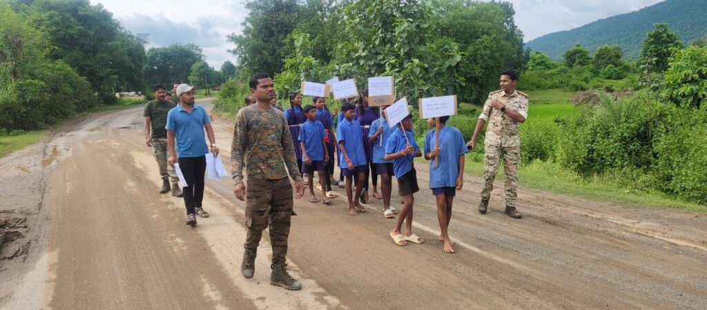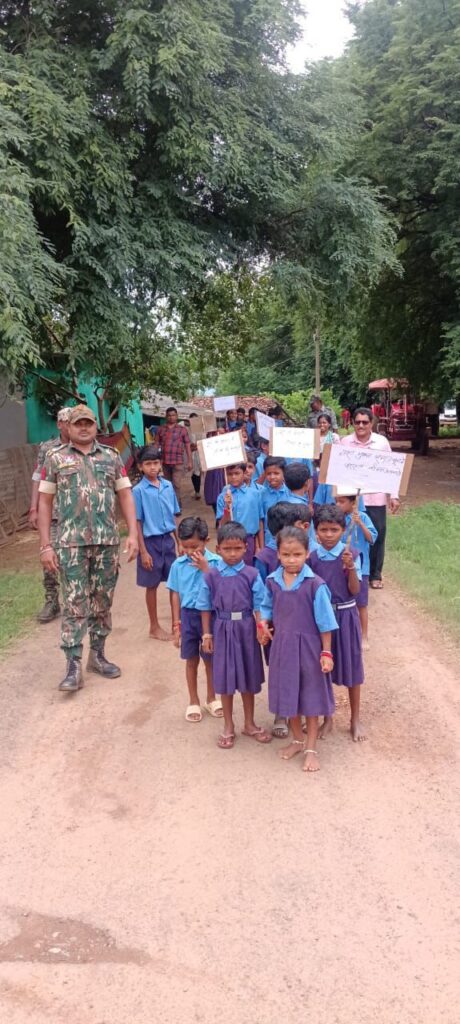 ग्रामीणों के साथ बैठक आयोजित कर नशा के दुष्प्रभाव, साइबर क्राइम, धोखाधड़ी, नक्सलवाद से होने वाली हानि और शिक्षा के महत्व के विषय में जानकारी दी गई। तत्पश्चात विद्यालय के छात्रों के साथ नशा मुक्ति जागरूकता रैली निकाली गई।