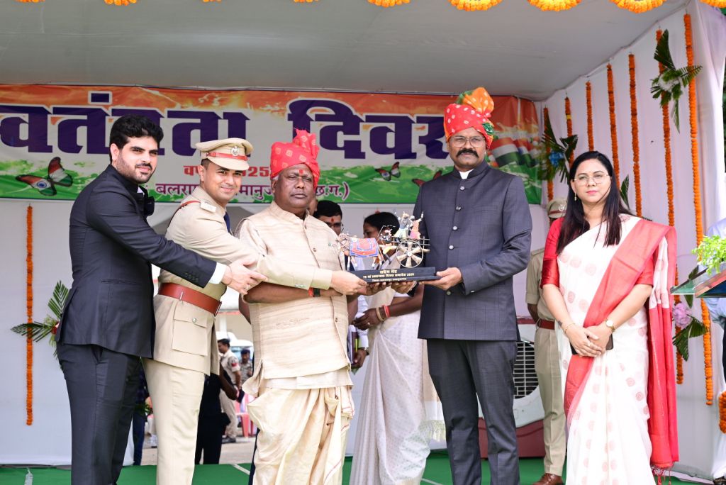 कार्यक्रम की अगली कड़ी में मुख्य अतिथि द्वारा मार्च पास्ट व सांस्कृतिक कार्यक्रमों के विजेताओं को शील्ड प्रदान कर उन्हें सम्मानित किया गया। मार्च पास्ट (सीनियर वर्ग) की उत्कृष्ठ प्रस्तुति पर प्रथम स्थान जिला पुलिस बल (पुरूष), द्वितीय स्थान जिला पुलिस बल (महिला) तथा तृतीय स्थान छ.ग. सशस्त्र बल 12वीं वाहिनी रामानुजगंज को मिला। इसी तरह जूनियर वर्ग में प्रथम स्थान सरस्वती शिशु मंदिर उच्चतर माध्यमिक विद्यालय बलरामपुर, द्वितीय स्थान राष्ट्रीय कैडर कोर (एनसीसी) शासकीय महाविद्यालय बलरामपुर तथा तृतीय स्थान संत जोसेफ उच्चतर माध्यमिक विद्यालय (बालिका) बलरामपुर को प्रदान किया गया।