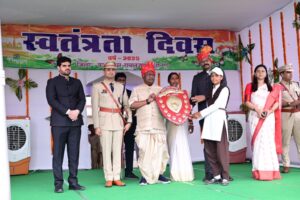 जिला मुख्यालय में सरगुजा सांसद श्री चिंतामणि महाराज ने ध्वजारोहण कर ली परेड की सलामी