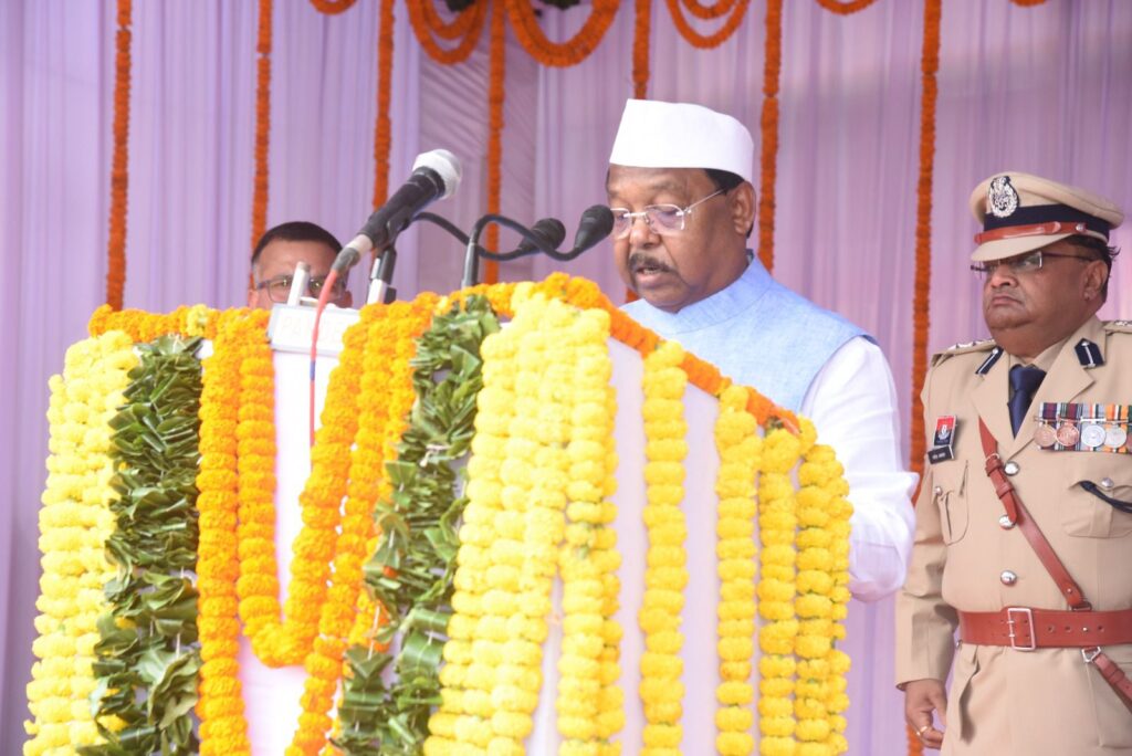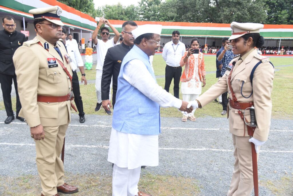 कृषि मंत्री श्री रामविचार नेताम ने ध्वजारोहण कर परेड की सलामी ली और मुख्यमंत्री का जनता के नाम संदेश का वाचन किया
