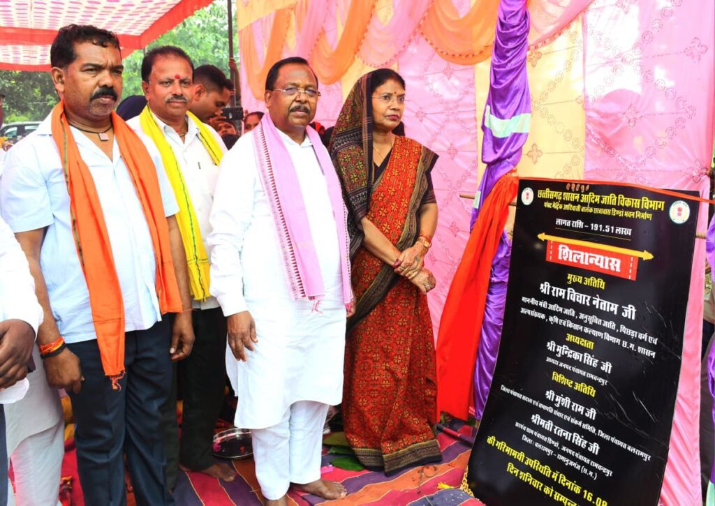 बलरामपुर, 16 अगस्त 2025/ आदिम जाति एवं अनुसूचित जाति विकास, पिछड़ा वर्ग एवं अल्पसंख्यक विकास, कृषि विकास एवं किसान कल्याण मंत्री श्री रामविचार नेताम ने जिले के विकासखंड रामचंद्रपुर अंतर्गत ग्राम पंचायत कुण्डपान में पहुंचकर ग्रामवासियों को अनेक सौगातें दीं। इस अवसर पर उन्होंने कुण्डपान में 62 करोड़ लागत राशि के विद्युत विस्तार कार्य का शुभारंभ किया, जिससे ग्रामीणों के घर-घर रोशनी पहुंचेगी। साथ ही ग्राम पंचायत डिंडो में 191.51 लाख रुपये की लागत से निर्मित होने वाले 50 सीटर पोस्ट मैट्रिक छात्रावास का शिलान्यास भी किया। इस छात्रावास के निर्माण से क्षेत्र के विद्यार्थियों को शिक्षा हेतु बेहतर सुविधा उपलब्ध होगी तथा गुणवत्तापूर्ण शिक्षा के अवसर मिल सकेंगे।