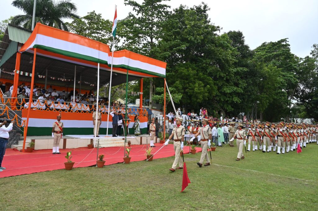 सेरसा स्टेडियम में 79 वें स्वतंत्रता दिवस पर डी आर एम तरुण हुरिया ने ध्वजारोहण के पश्चात ली परेड की सलामी ,