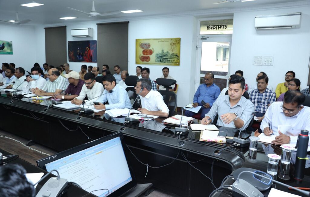कलेक्टर ने विभागीय भर्ती प्रक्रिया पर भी विशेष ध्यान देते हुए कहा कि साक्षात्कार प्रक्रिया का वीडियो रिकॉर्ड होना अनिवार्य रहेगा। इससे पारदर्शिता सुनिश्चित होगी और भविष्य में किसी प्रकार के विवाद की संभावना नहीं रहेगी। उन्होंने भू-अर्जन, राजस्व प्रकरणों और रिकॉर्ड दुरुस्ती की प्रगति पर आवश्यक दिशा-निर्देश दिए। बैठक के समापन में आदिवासी विकास विभाग द्वारा आदि कर्मयोगी अभियान के संबंध में विस्तार से प्रजेंटेशन दिया गया। इस अवसर पर जिला पंचायत सीईओ श्री जितेंद्र यादव, सहायक कलेक्टर श्री अक्षय डोसी, अपर कलेक्टर श्री अपूर्व प्रियेश टोप्पो, श्री रवि राही, डॉ. प्रियंका वर्मा, सभी एसडीएम और जिला स्तरीय अधिकारी उपस्थित रहे।