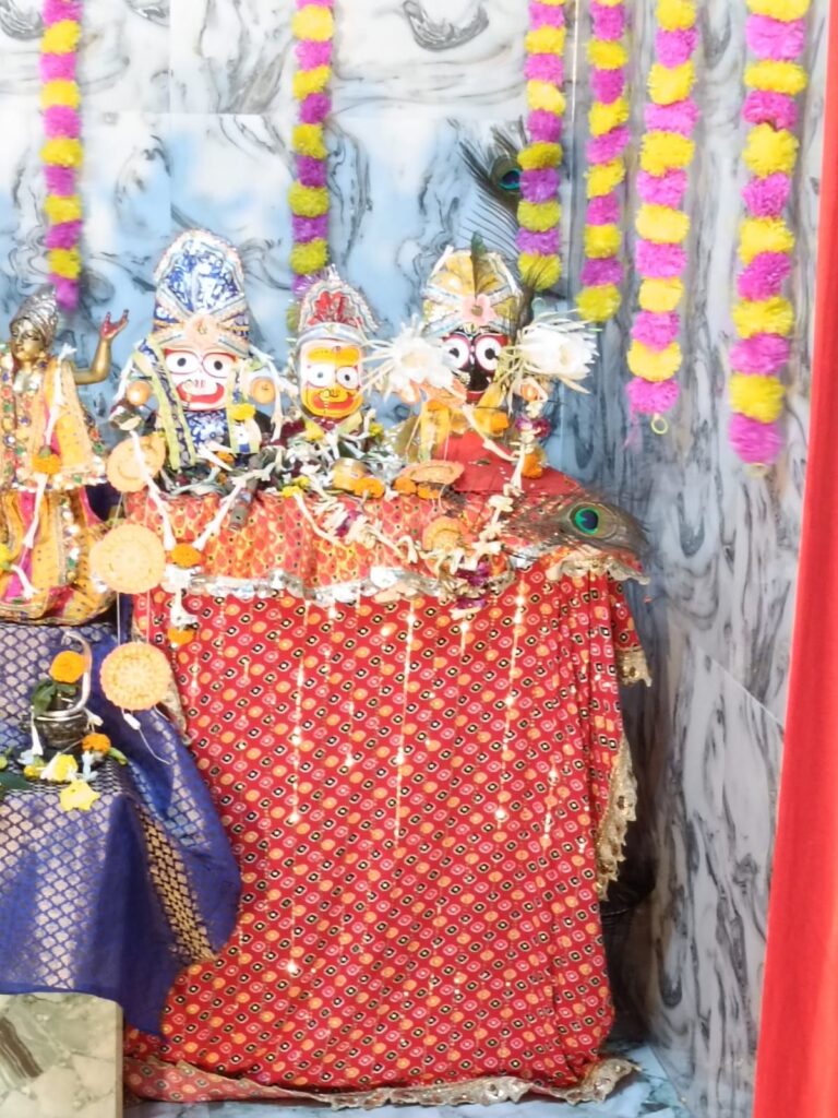 इस क्रम में मंदिर परिसर में भगवान श्री जगन्नाथ ,सुभद्रा और बलभद्र के प्रतिमा का मंदिर के पुजारी संजीव राउत के द्वारा वैदिक मंत्रोच्चारण के साथ प्राण प्रतिष्ठा किया गया।