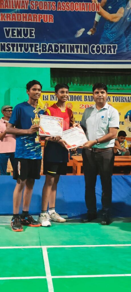 चक्रधरपुर। दक्षिण पूर्व रेलवे स्पोर्ट्स एसोसिएशन (सेरसा) के तत्वावधान में नेताजी सुभाष चंद्र बोस बैडमिंटन कोर्ट, साउथ वेस्ट इंस्टीट्यूट में आयोजित तीन दिवसीय अंतर विद्यालय बैडमिंटन प्रतियोगिता सोमवार को संपन्न हुई। प्रतियोगिता में रेलवे इंग्लिश मीडियम स्कूल चक्रधरपुर ने ओवरऑल चैंपियन का खिताब अपने नाम किया, जबकि मधुसूदन पब्लिक स्कूल (एमपीएस) चक्रधरपुर उपविजेता रहा।