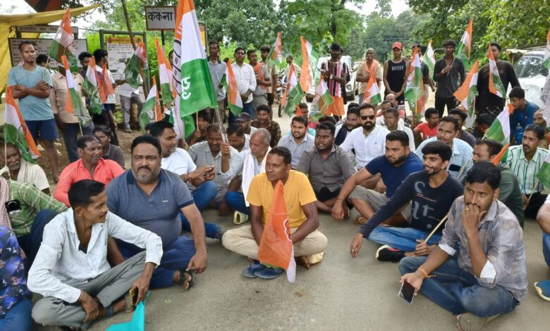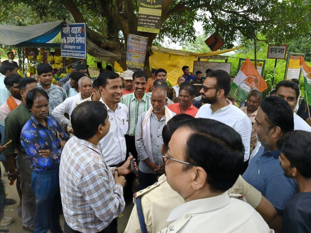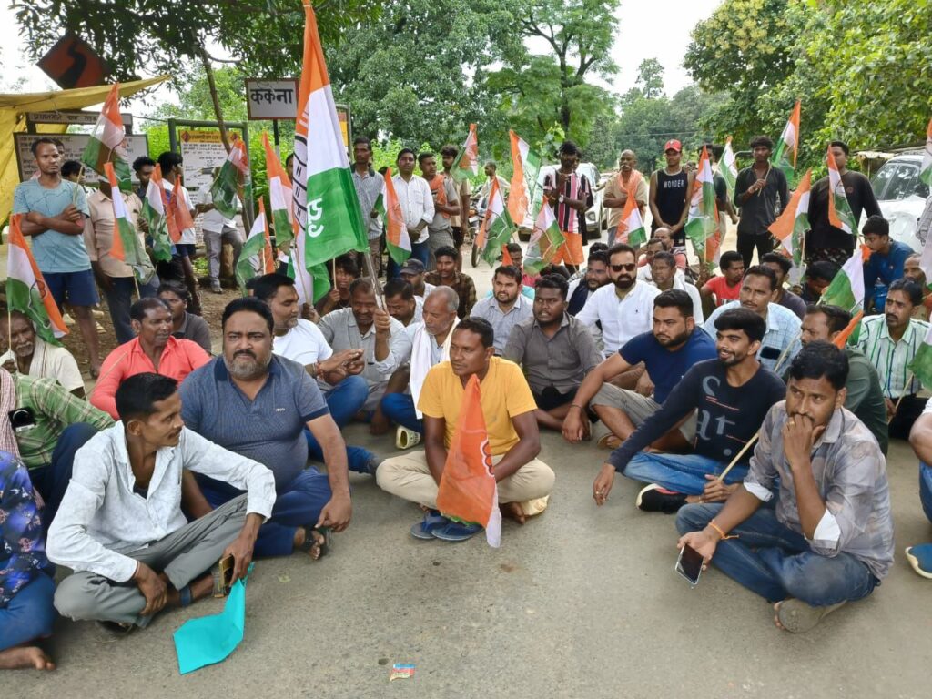 ककना-कल्याणपुर सड़क पर ओवरलोड वाहनों को रोक लगाने युवा कांग्रेस और कांग्रेसियों ने किया चक्काजाम