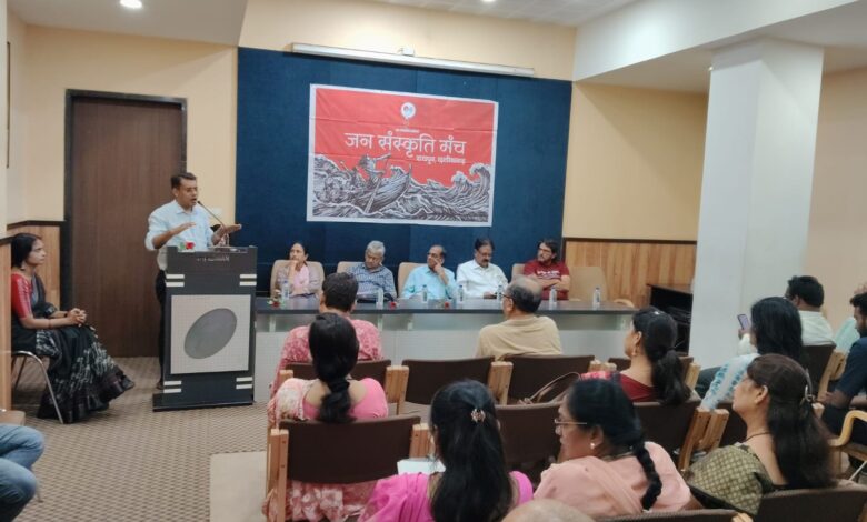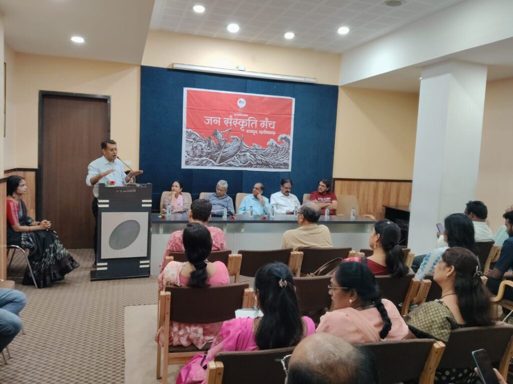 रायपुर. रविवार 24 अगस्त को जन संस्कृति मंच रायपुर के ‘सृजन संवाद’ कार्यक्रम के तहत स्थानीय वृंदावन हॉल में नवोदित और वरिष्ठ रचनाकारों ने अपनी प्रतिनिधि रचनाओं का पाठ किया.