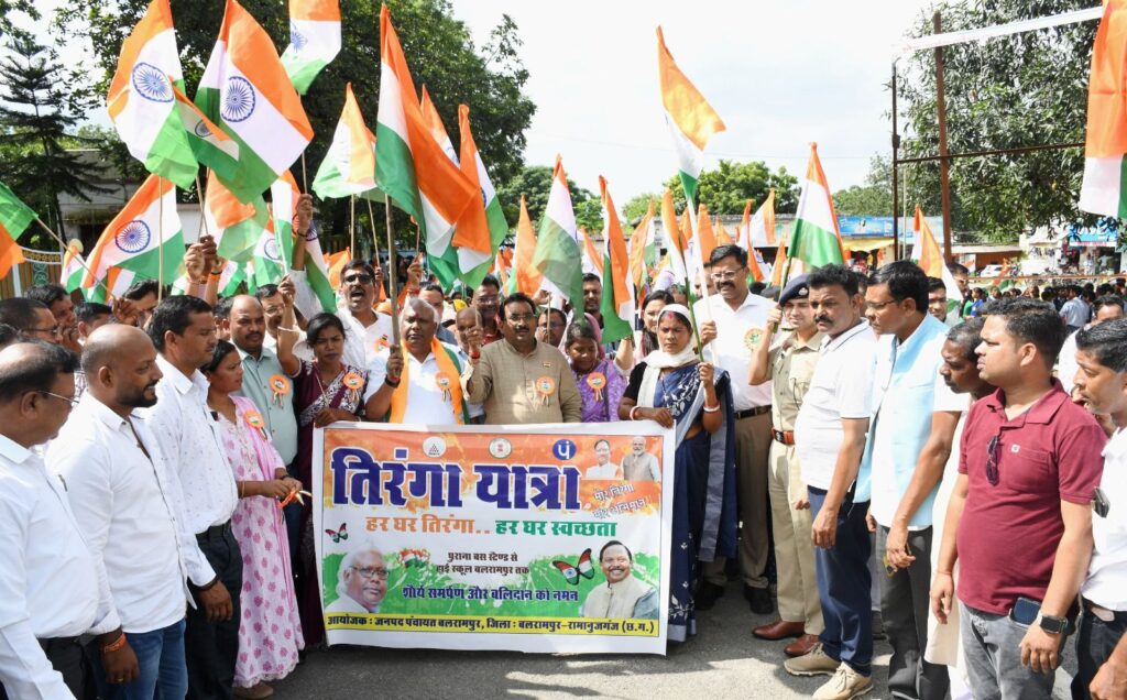 जगदलपुर- आजादी के अमृत महोत्सव और स्वतंत्रता दिवस के अवसर पर गुरु गोविंद सिंह वार्ड क्रमांक 36 में मोर तिरंगा मोर अभियान के अंतर्गत भव्य तिरंगा यात्रा का आयोजन गुरुवार को किया गया। इस यात्रा का उद्देश्य देशभक्ति की भावना को प्रोत्साहित करना और भारत के राष्ट्रीय ध्वज के प्रति जागरूकता बढ़ाना रहा।