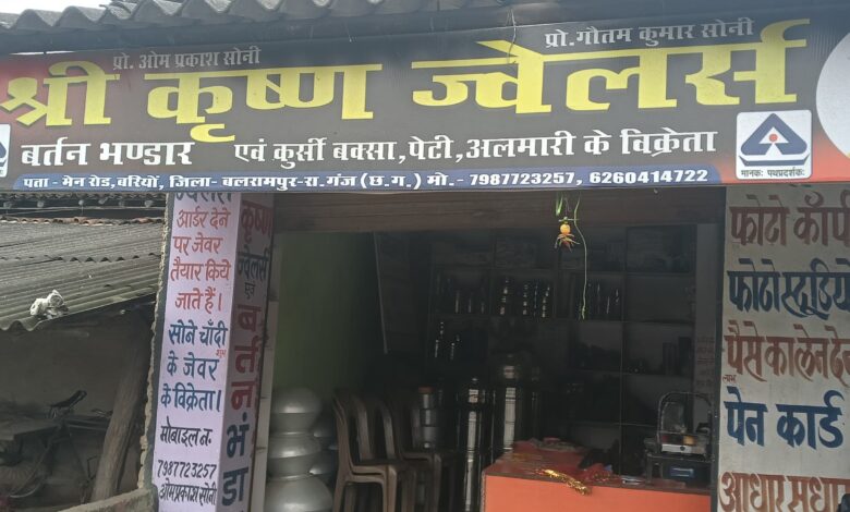 बलरामपुर/राजपुर/बरियों।बलरामपुर जिले के बरियों पुलिस चौकी अंतर्गत एनएच 343 बस स्टैंड के पास बीती दरम्यानी रात्रि अज्ञात चोरों ने कृष्ण ज्वेलर्स और बर्तन दुकान में ताला तोड़कर लाखों रुपए के सोने, चांदी, बर्तन चोरी कर फरार हो गए। सूचना उपरांत मौके पर पुलिस पहुंचकर नगर में लगे सीसीटीवी कैमरा खंगाल रही है।