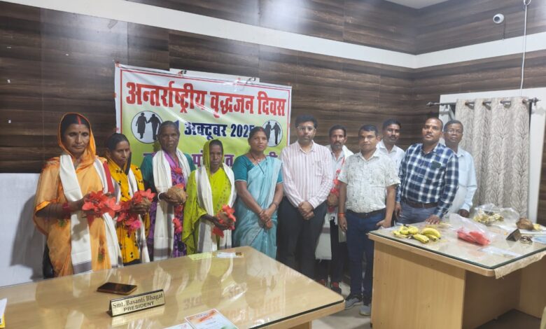 बलरामपुर, 01 अक्टूबर 2025/ अंतर्राष्ट्रीय वृद्धजन दिवस के अवसर पर जिला मुख्यालय सहित सभी विकासखण्डों में वृद्धजन सम्मान समारोह का आयोजन किया गया। जिसमें वृद्धजनों को शाल एवं श्रीफल देकर सम्मानित किया गया। जिला मुख्यालय बलरामपुर के जनपद पंचायत सभाकक्ष में जिला स्तरीय वृद्धजन सम्मान समारोह का आयोजन किया गया। कार्यक्रम की शुरुआत छत्तीसगढ़ महतारी के चित्र पर माल्यार्पण और दीप प्रज्वलन से की गई।