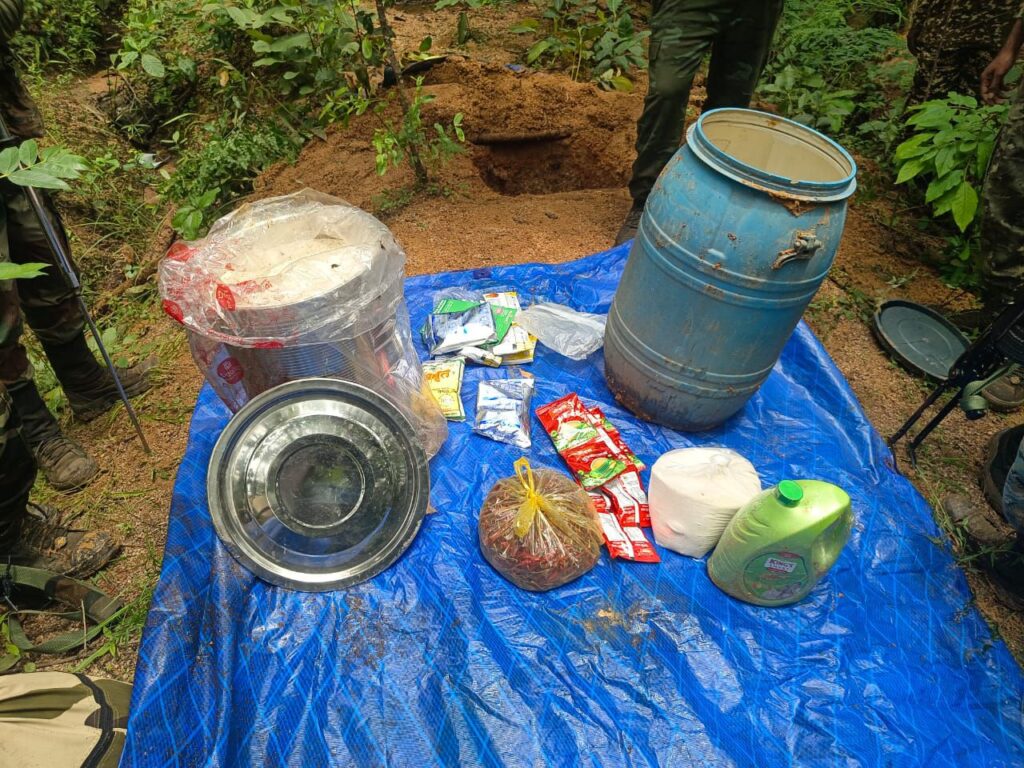 सर्च के दौरान 5 सितंबर को स्टील कन्टेनर से बने आईईडी बम. नक्सल साहित्य, नक्सली बैनर, बण्डल इलेक्ट्रानिक वायर, फटाखा बम ,कॉर्डेक्स वायर, पावर बैंक, नक्सली वर्दी, सिंगल शॉट बैरल, छोटा सोलर प्लेट एवं अन्य दैनिक उपयोगी सामग्री बरामद कर माओवादियों के विनाशकारी नीतियों को विफल करने में पुलिस ने सफलता प्राप्त की है।