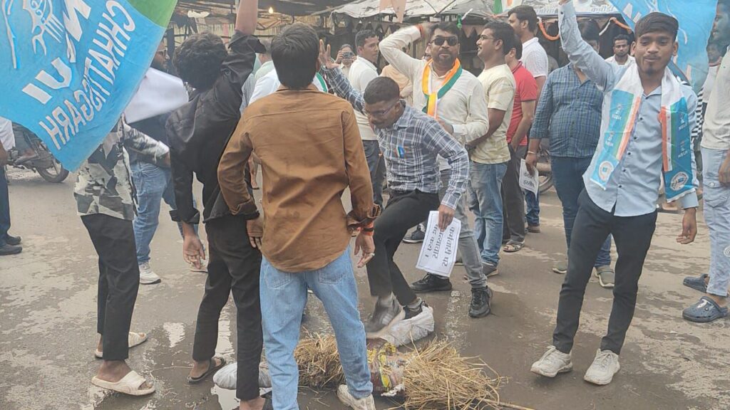 मंत्री केदार कश्यप के खिलाफ खरसिया में युवाओं का फूटा गुस्सा, पुतला दहन कर जताया विरोध
