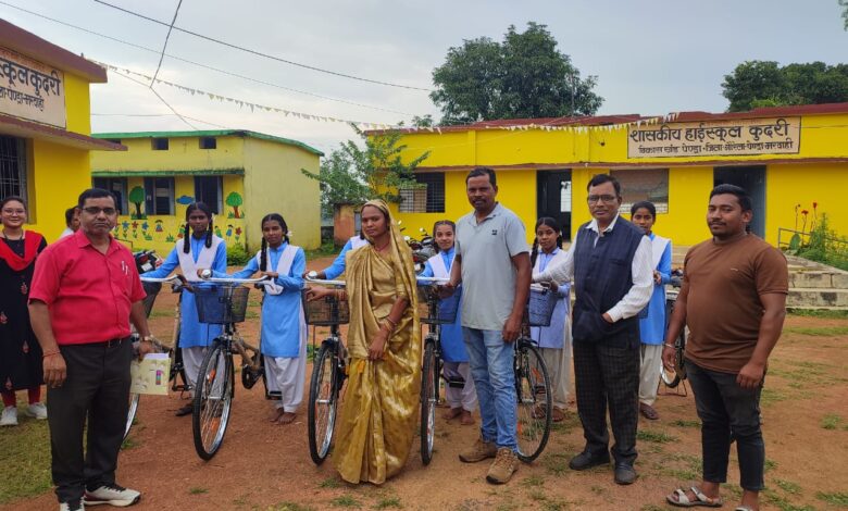 शासकीय हाई स्कूल कुदरी की छात्राओं को दी गई साइकिल