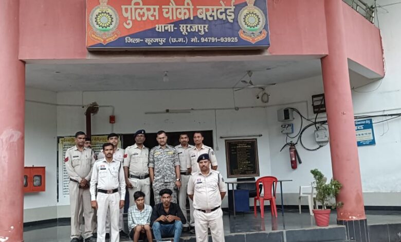 मामले की सूचना पर डीआईजी व एसएसपी सूरजपुर श्री प्रशांत कुमार ठाकुर ने अज्ञात चोर की पतासाजी कर माल मुलजिम को जल्द पकड़ने के निर्देश दिए। चौकी बसदेई पुलिस ने मामले की विवेचना के दौरान आदतन चोरों को तलब पूछताछ किया और घटना स्थल के आसपास सुराग खोजने के दौरान मुखबीर से प्राप्त सूचना के आधार पर संदेही राहुल सोनवानी व दीपक कुर्रे को दबिश देकर पकड़ा गया।