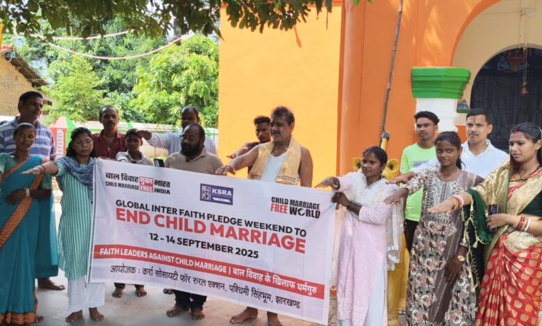 चक्रधरपुर। देश से बाल विवाह के खात्मे के लिए पूरे देश भर में चल रहे वैश्विक अंतरधार्मिक सप्ताहांत अभियान के क्रम में रविवार को पोडाहाट अंचल के प्रसिद्ध केरा पीठ में कर्रा सोसायटी फॉर रुरल एक्शन पश्चिमी सिंहभूम की ओर से धार्मिक गुरुओं के माध्यम से इसके रोकथाम के लिए लोगों को जागरुक किया गया एवं इसे 2030 तक पूरे देश के संपूर्ण रुप से समाप्त करने की सपथ दिलाई गई।