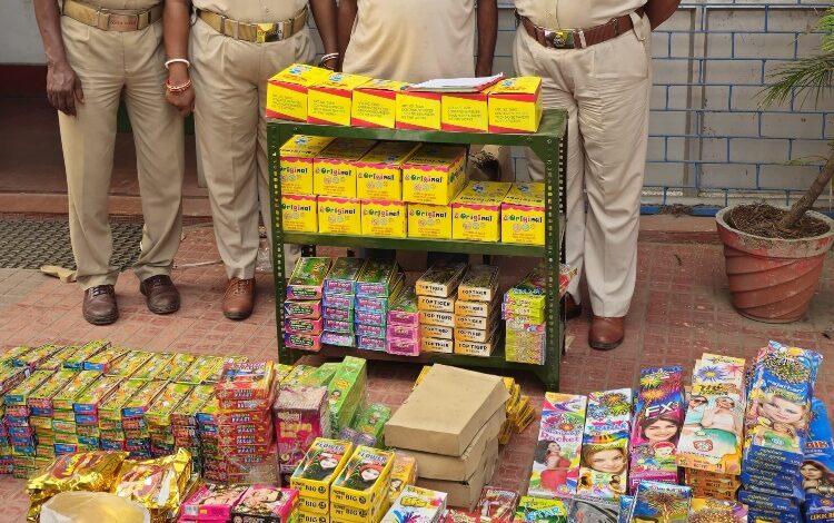 पुलिस ने मौके से विभिन्न प्रकार के पटाखों को जब्त किया, जिनमें शामिल हैं—