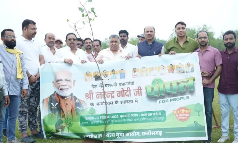 सेवा पखवाड़ा के अंर्तगत मंत्री श्री राजेश अग्रवाल ने ग्राम पंचायत हर्राटिकरा, सांडबार में ’’पीपल फार पीपल़़’’ अभियान के अंतर्गत पीपल का पौधा रोपित कर पर्यावरण संरक्षण का संदेश भी दिया।
