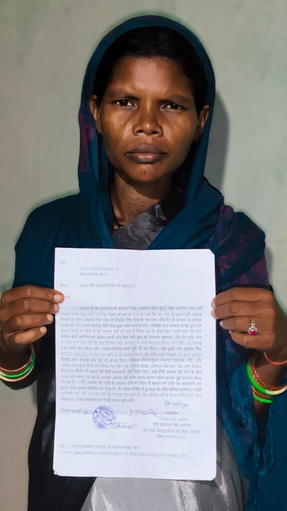 विनिता बाई का कहना है कि 17 सितंबर को जब वह शिकायत लेकर जिला कार्यालय पहुंचीं तो सीईओ जयप्रकाश डड़सेना, आवास मित्र और रोजगार सहायक ने उन्हें रोककर डराया-धमकाया।