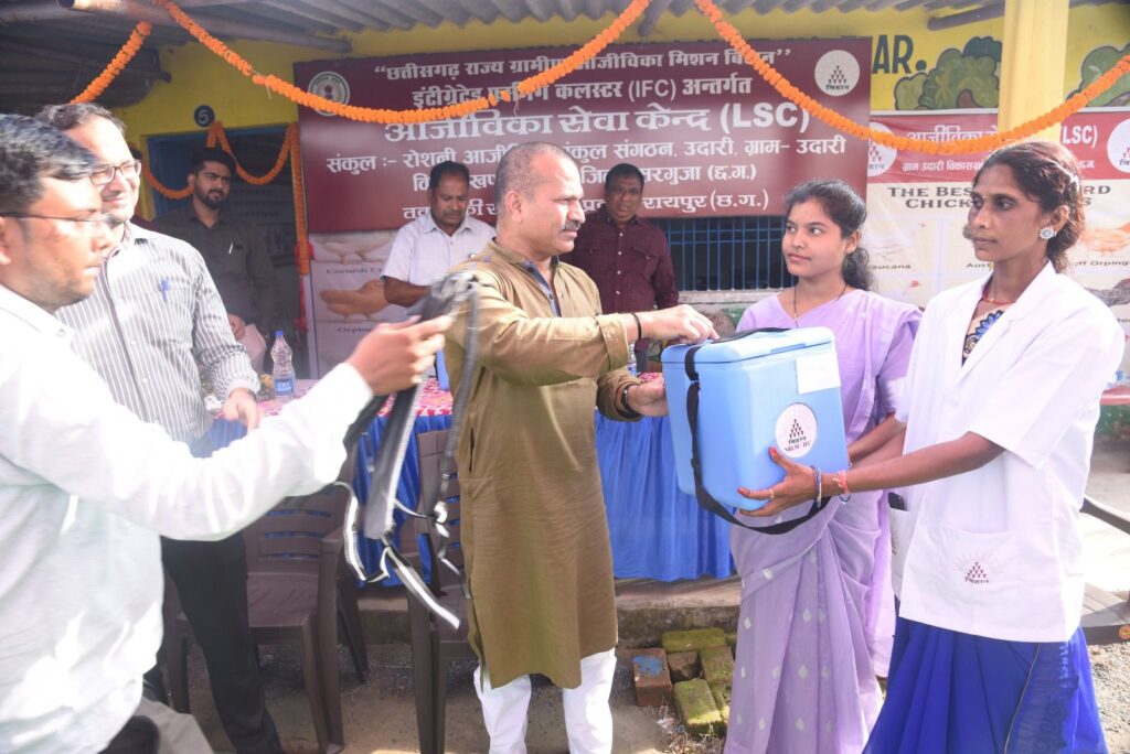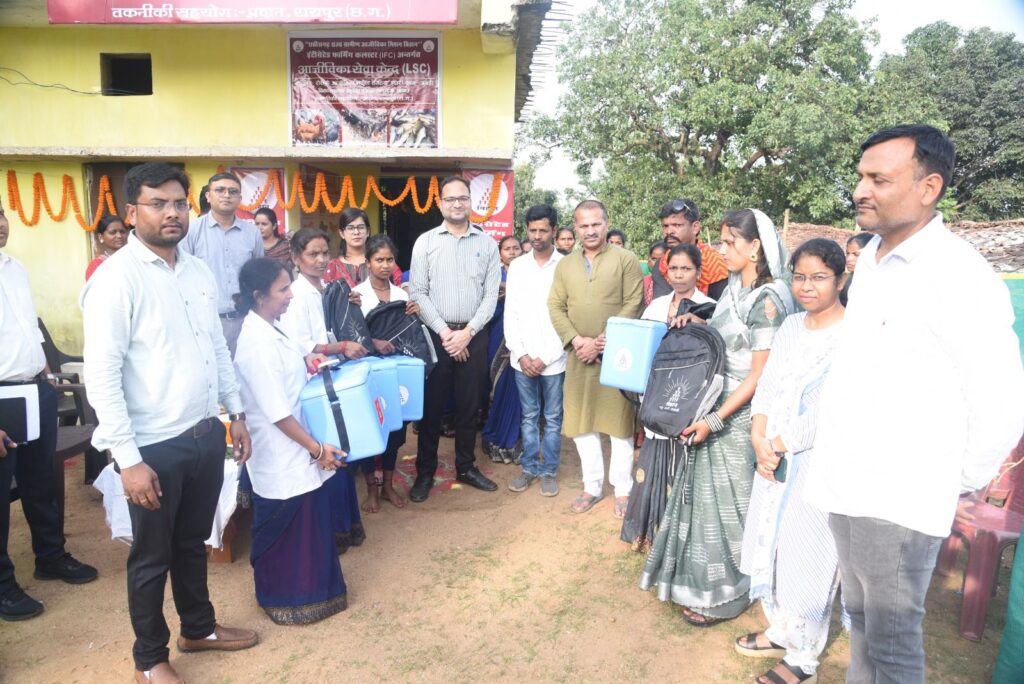 इस अवसर पर कलेक्टर श्री विलास भोसकर एवं जिला पंचायत सीईओ श्री विनय कुमार अग्रवाल, सरपंच , उपसरपंच एवं बड़ी संख्या स्व सहायता समूह की महिलाएं उपस्थित थीं। उन्होंने सामुहिक रुप से फीता काटकर आजीविका सेवा केंद्र का उद्घाटन किया। साथ ही स्व सहायता समूह की दीदियों को पशु सखी किट प्रदान एवं मत्स्य बीज का वितरण किया गया।