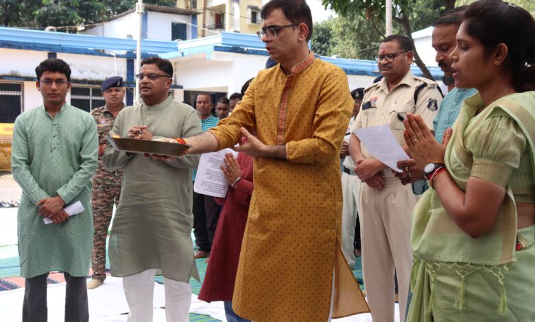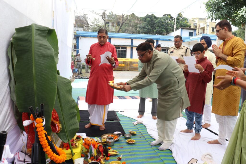 इसी कड़ी में गुरूवार, 02 अक्टूबर 2025 को डीआईजी व एसएसपी सूरजपुर श्री प्रशांत कुमार ठाकुर ने पुलिस लाईन में पुलिस अधिकारियों एवं जवानों के साथ विधि-विधान से अस्त्र-शस्त्र एवं शासकीय वाहनों की पूजा-अर्चना की। पूजा के पश्चात उन्होंने उपस्थित अधिकारियों/कर्मचारियों सहित जिले के समस्त नागरिकों को विजयदशमी की हार्दिक बधाई एवं मंगलकामनाएं प्रेषित कीं। डीआईजी व एसएसपी सहित पुलिस अधिकारियों ने विजयदशमी के अवसर पर हर्ष फायर भी किये।