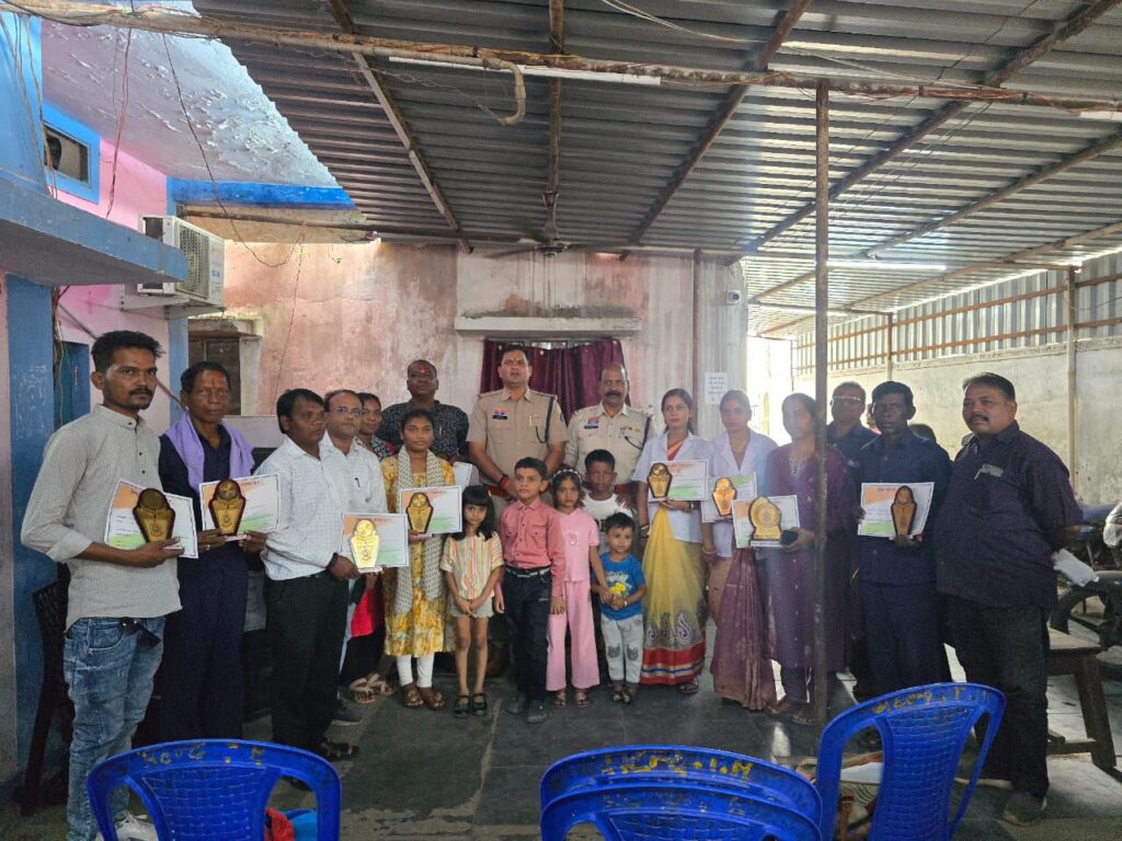 रायगढ़, 5 अक्टूबर । पुलिस अधीक्षक श्री दिव्यांग पटेल के दिशा-निर्देशन पर थाना जूटमिल में आज ग्राम कोटवारों के साथ थाना प्रभारी निरीक्षक प्रशांत राव की बैठक एवं स्थानीय नागरिकों का सम्मान समारोह आयोजित किया गया। नवरात्र और दशहरा पर्व के दौरान शांति व्यवस्था बनाए रखने में कोटवारों के योगदान की सराहना करते हुए थाना प्रभारी ने उनके उत्साहवर्धन हेतु उन्हें सम्मानित किया और गांवों की गतिविधियों की जानकारी ली। उन्होंने उपस्थित कोटवारों से कहा कि वे गांव में होने वाली किसी भी अनैतिक या आपराधिक गतिविधि की सूचना तत्काल पुलिस और प्रशासन को दें तथा अपनी जिम्मेदारी पूरी निष्ठा से निभाएं।