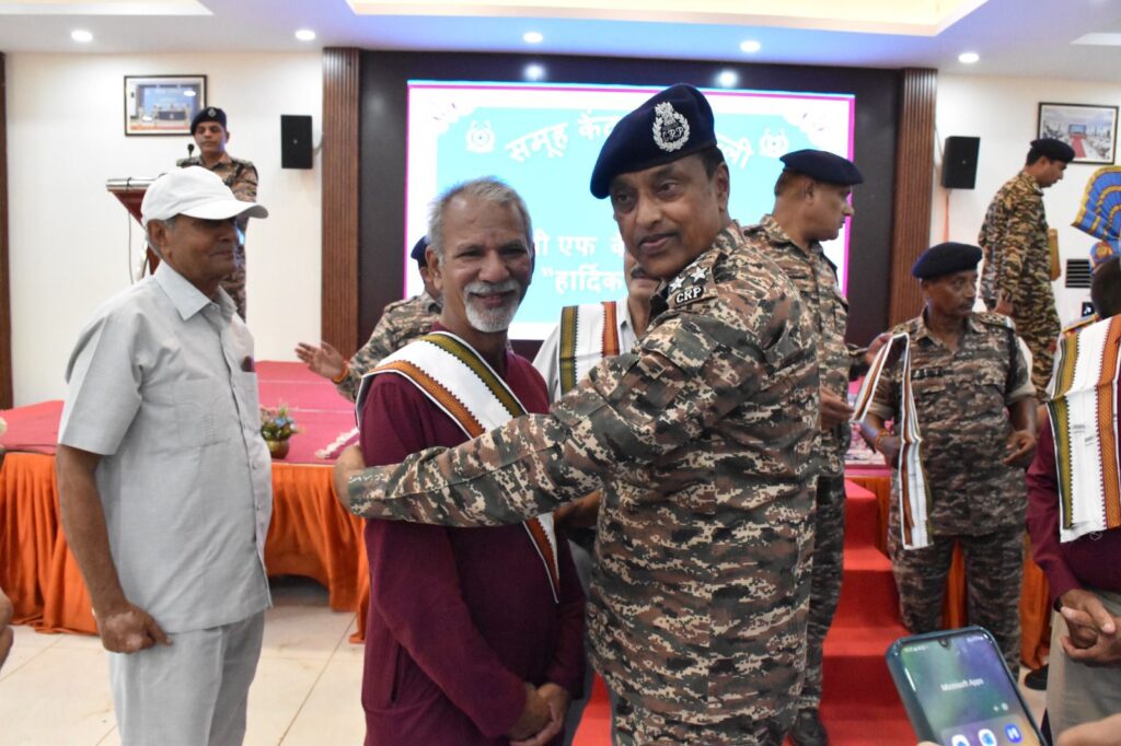 वेलफेयर मीटिंग में 1975 में इसी ग्रुप केंद्र में सिपाही के पद पर 50 साल पहले भर्ती हुए 50 पूर्व अर्धसैनिकों का डीआईजी श्री विनय कुमार सिंह द्वारा अंग वस्त्र फूल मालाएं पहनाकर स्वागत करते हुए कहा कि सीआरपीएफ एवं राष्ट्र को आप पर नाज़ है। डीआईजी महोदय द्वारा सभी 250 रिटायर्ड जवानों को अंग वस्त्र पहना कर सम्मानित किया जिसमें सिपाही से लेकर पूर्व डीआईजी रैंक तक के जवानों व अधिकारी वर्ग शामिल हुए।