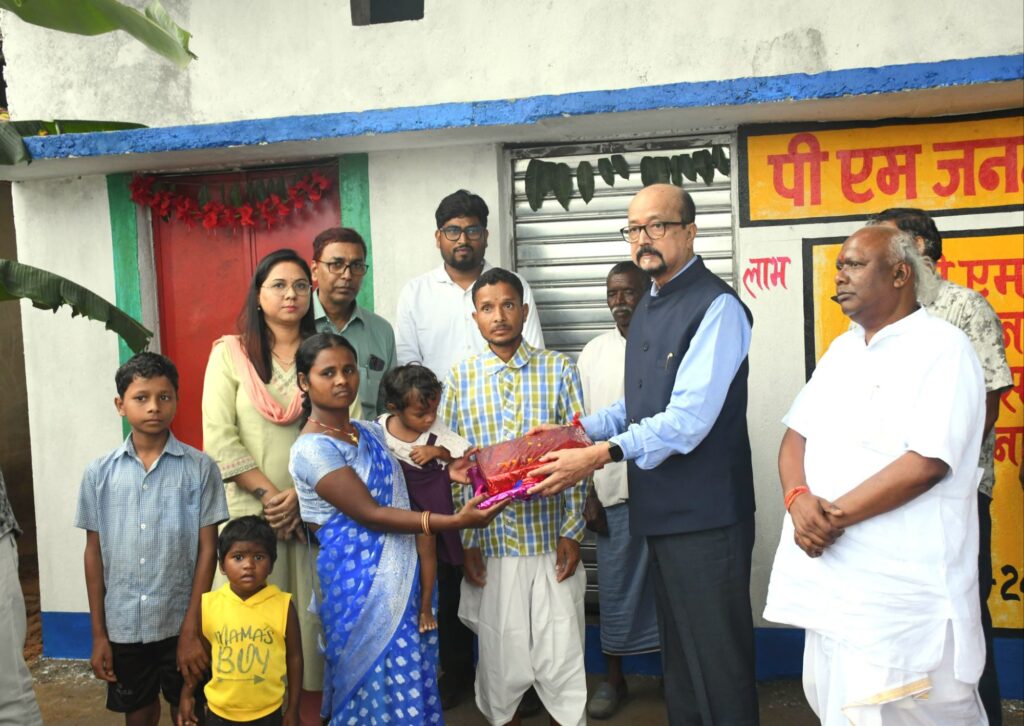 राज्यपाल श्री रमेन डेका ने कार्यक्रम के अंत में पहाड़ी कोरवा परिवारों को विभागीय योजना अंतर्गत सामग्री का वितरण किया। जिसमें पंचायत एवं ग्रामीण विकास विभाग के अंतर्गत 02 महिला स्व-सहायता समूहों को चेक, 05 हितग्राहियों को स्वच्छता किट, 01 हितग्राही को व्यक्तिगत शौचालय की स्वीकृति, 03 हितग्राहियों को बकरी शेड निर्माण की स्वीकृति राजस्व विभाग के अंतर्गत 03 हितग्राहियों को ऋण पुस्तिका, स्वास्थ्य विभाग के अंतर्गत 02 हितग्राहियों को वय वंदन कार्ड, 03 हितग्राहियों को आयुष्मान कार्ड, 01 हितग्राही को पोषण आहार किट, श्रम विभाग के अंतर्गत 01 हितग्राही को नोनी सषक्तिकरण योजना के अंतर्गत चेक, 04 हितग्राहियों को श्रम पंजीयन कार्ड, कृषि विभाग के अंतर्गत 04 हितग्राहियों को सरसों बीज तथा उद्यान विभाग के अंतर्गत 03 हितग्राहियों को टमाटर के पौधे का वितरण किया गया।