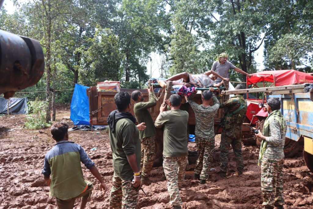 मरीज को कुप्पागुड़ा कैम्प लाकर प्राथमिक उपचार के बाद ट्रेक्टर की मदद से मुतवेंडी तक पहुचाया,