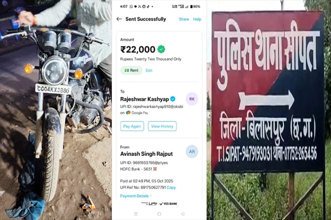 बिलासपुर : सीपत थाना क्षेत्र से एक गंभीर मामला सामने आया है, जिसमें एक स्थानीय व्यापारी ने थाना प्रभारी और पुलिसकर्मी पर 185 की कार्रवाई की धमकी देकर अवैध वसूली करने का आरोप लगाया है। व्यापारी ने इस संबंध में वरिष्ठ पुलिस अधीक्षक बिलासपुर को लिखित शिकायत सौंपी है और दोषी पुलिसकर्मियों के खिलाफ कड़ी कार्रवाई की मांग की है। ग्राम सीपत निवासी अविनाश सिंह ठाकुर, जो नवाडीह चौक में किराना दुकान संचालित करते हैं, उन्होंने अपने आवेदन में बताया कि दिनांक 5 अक्टूबर 2025, रविवार को वे अपने साथी रवि कश्यप के साथ किसी कार्य से सीपत थाने गए थे।