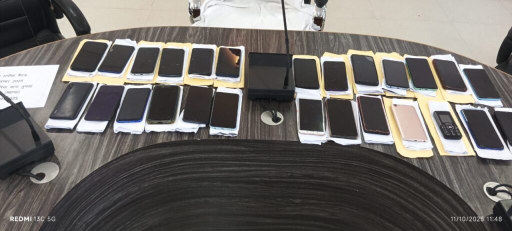 आज दिनांक 11.10.25 को साइबर सेल जशपुर के द्वारा पुलिस अधीक्षक कार्यालय जशपुर, के कंट्रोल रूम में एक विशेष कार्यक्रम का आयोजन किया गया। जिसमें की सायबर सेल के द्वारा जिले के विभिन्न थाना/ चौकी क्षेत्रों में चोरी व गुम हुए मोबाइल फोन को ढूंढकर उनके मालिकों के सुपुर्द किया गया।
